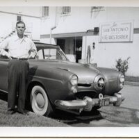 This is a picture of George Reynolds by a car in San Antonio