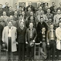 Herald and Review Library: Photo of Macon County Draftees: Article on back of photo; "Decatur draft board No. 2 has called up the following men and sent them to induction centers. Left to Right; Front Row: W.C. Burley, L. D. Rainey, Arthur E.…