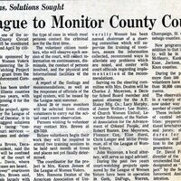 Browse Items (1 total) Tags: Monitoring County Court Browse All Browse by Tag Search Items Sort by: Title Creator Date Added League of Women Voters - News Article - County Court - 1977 This is a historical account of correspondence of the League of Women Voters of Macon County Tags: 1977, Decatur IL, Herald and Review, League of Women Voters, Monitoring County Court, News Article
