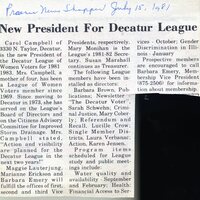 Browse Items (1 total) Tags: New President for League Browse All Browse by Tag Search Items Sort by: Title Creator Date Added League of Women Voters - News Article - New League President - 1981 This is a historical account of correspondence of the League of Women Voters of Macon County Tags: 1981, Carol Campbell, Decatur IL, Herald and Review, League of Women Voters, New President for League, News Article