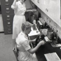 Photographs from the 1950's of doctors, nurses, patients, and equipment from Decatur Memorial Hospital.