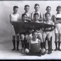 This is a glass negative of the Pugh St. Boys Basketball Team. The photo was taken by Charles Wasson of Wasson Studios in Decatur, IL in the early 1900s.