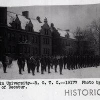 Photograph of the R.O.T.C. outside of Millikin University thought to be taken in 1917.