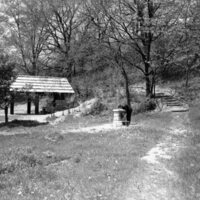 These negatives depict the picnic area at Fairview Park. One scene shows a man drinking from a water fountain with a small pavilion in the background. The other is a close-up of the man drinking from the water fountain. The photos were taken by…