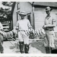 Browse Items (1 total) Tags: string of fish Browse All Browse by Tag Search Items Sort by: Title Creator Date Added 3 Unknown Men with a String of Fish Photograph of 3 unknown men holding a long string of fish in front of a house. Tags: Besalke Family Collection, fish, house, string of fish, unknown men