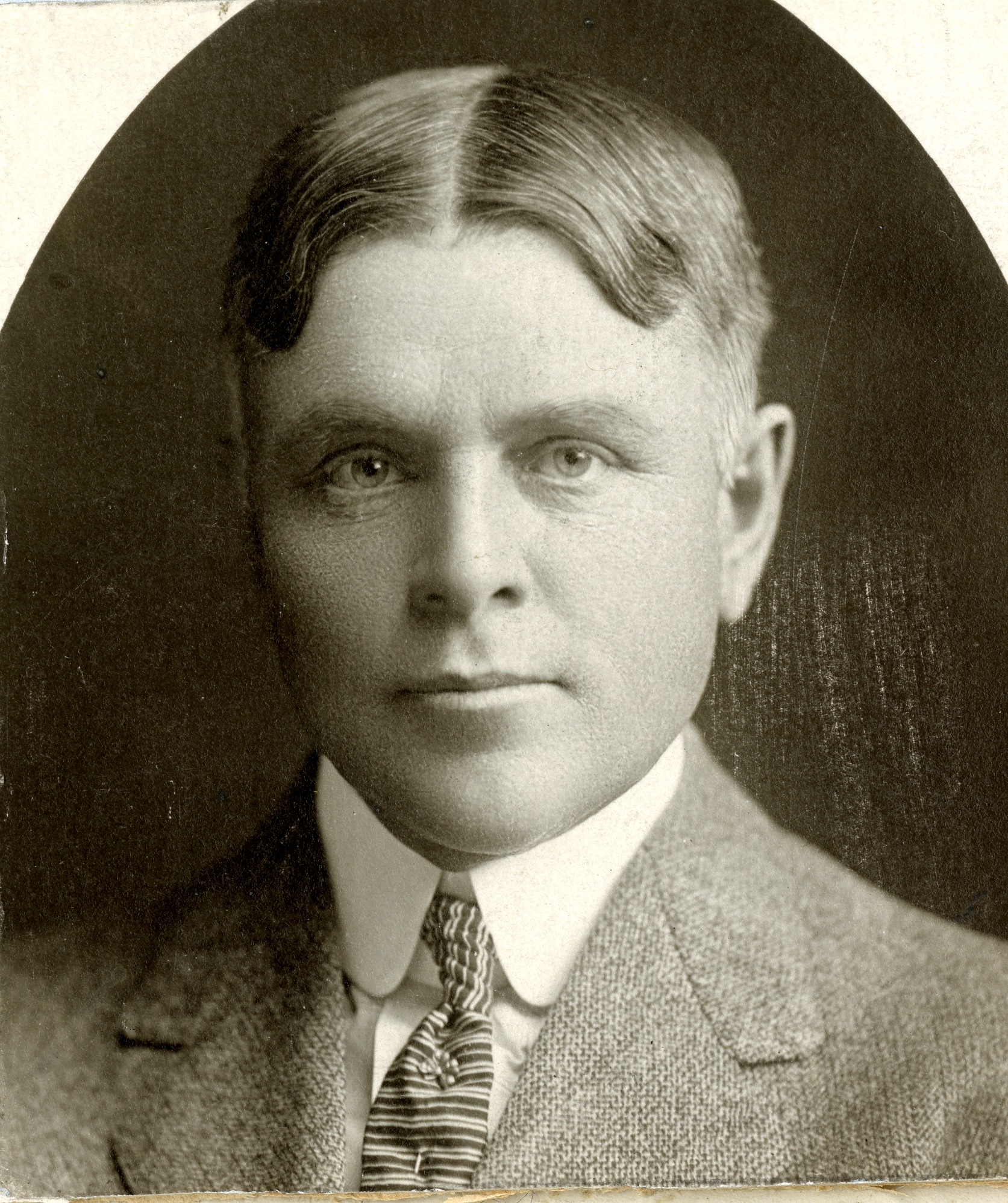 Photograph of J. Bering Burrows (d. 4/14/1937). He was the Director of the National Bank of Decatur, and had gone into business with his father, Lowber Burrows, as a banker in 1905. He lived at 271 W. North St, the 1956 site of the Masonic Temple parking lot. The photo ran in the Decatur Daily Review in 1916.