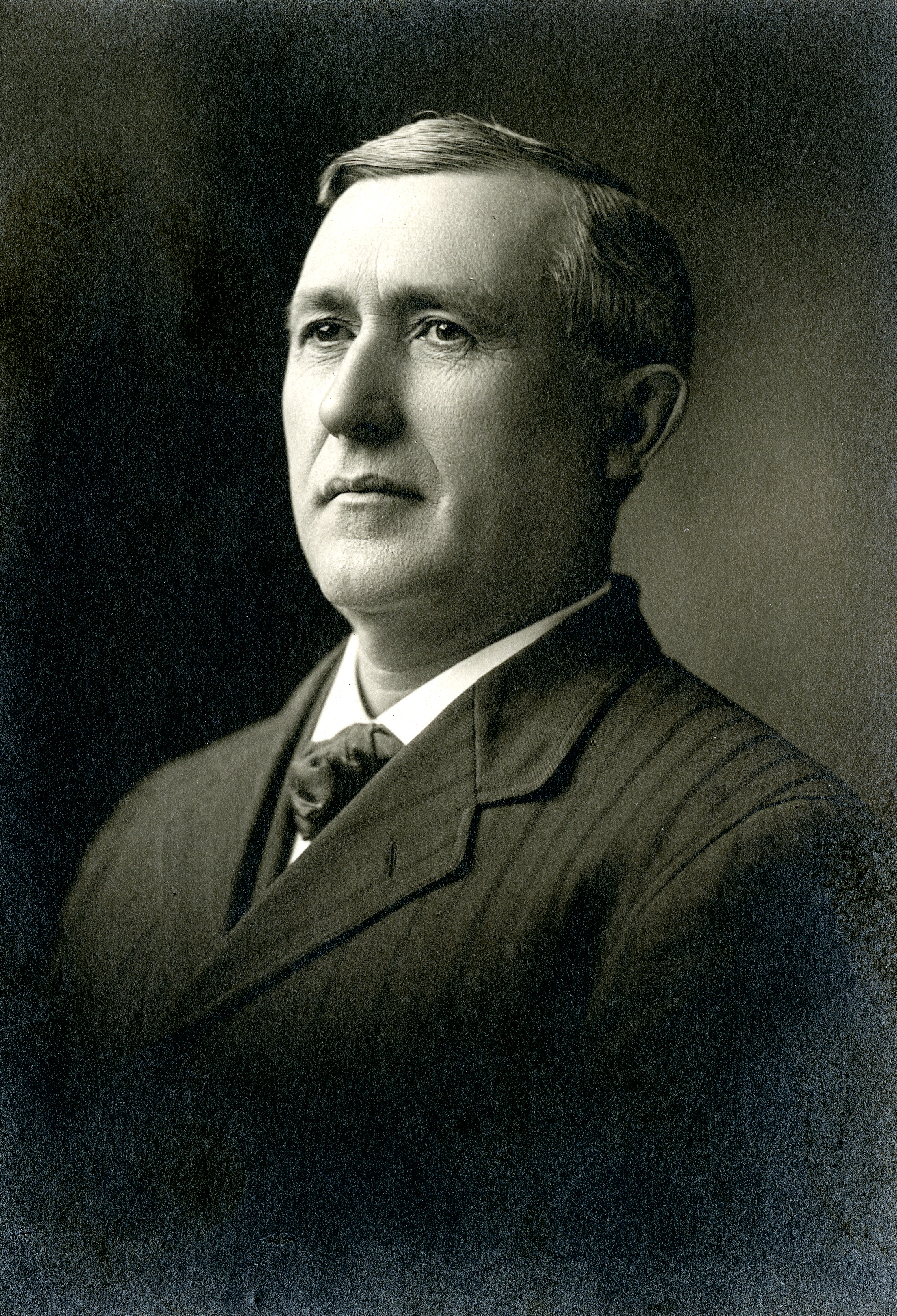 Photograph of I.N. Irwin (d. 9/18/1931), a prominent Decatur druggist for 50 years. Partner in the Irwin Drug Co. with his brother, S.M. Irwin, and bought his brother's interest in 1892. In 1929, he sold a share of the business to Delos Cozad, and changed the name of the business to Irwin-Cozad Drug Store. This store was located at 101 E. Prairie Ave. The store took voluntary bankruptcy in July 1937. Irwin was the first in Decatur to sell Coca-Cola and ice cream soda. In 1911, he and his brother bought Bushway Flavoring Extract Co. at 949 N. Water St., and S.M. Irwin managed it. The photo was taken by Vandeventer, and used in the Decatur Herald or Daily Review in 1917.