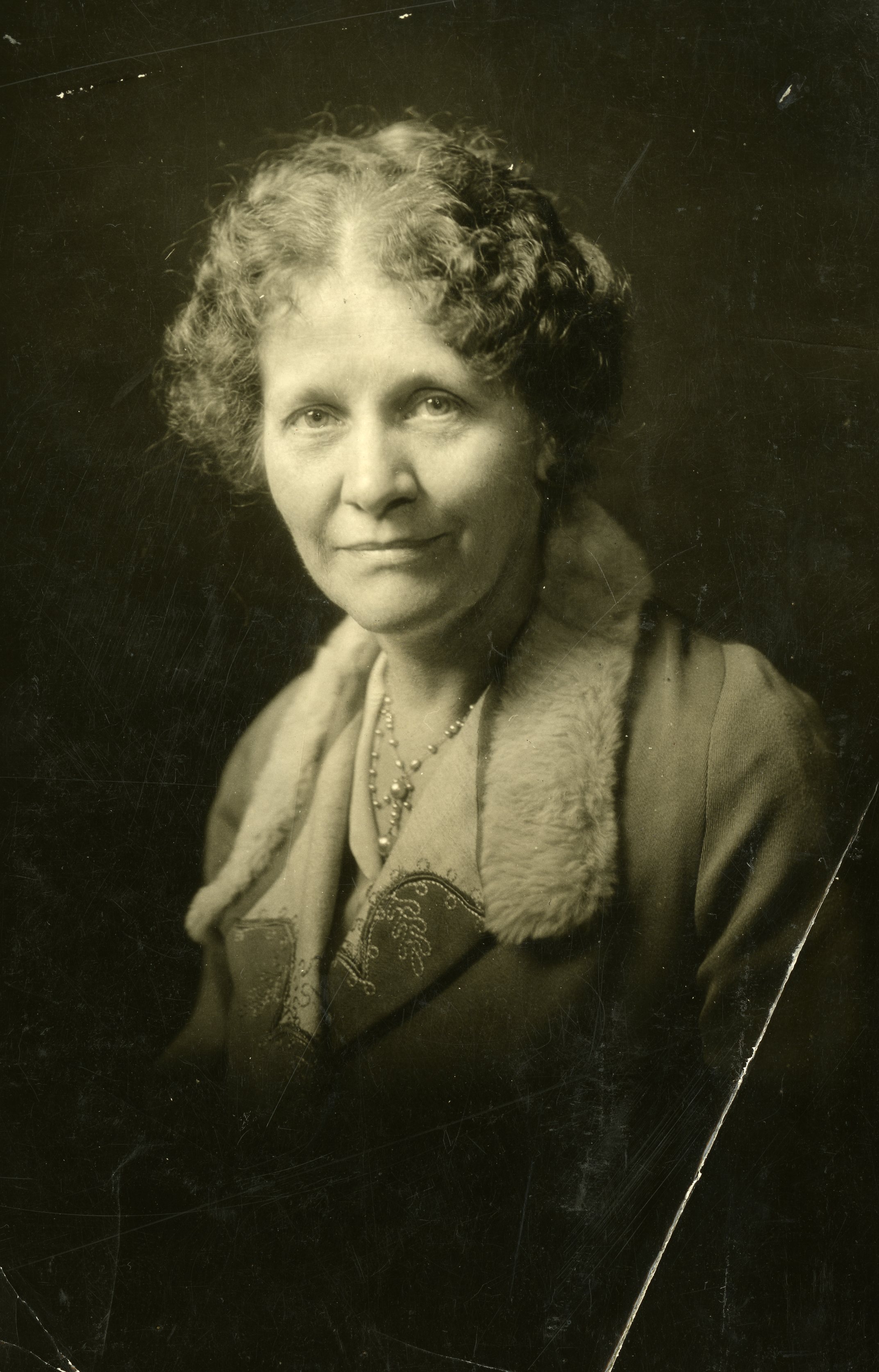Photograph of Mrs. A. M. Wells (Mary R.). Died 6/18/1954. Wife of Rev. A. M. Wells who died in 1950. He was for 50 years in the Methodist ministry in Central Illinois. During the last 19 years of his ministry he was executive secretary of the Preachers Aid Society of the Illinois Conference of the Methodist Church. She was active in the Decatur Woman's Club, the Art Institute and church work, particularly helping her husband with his duties in connection with the Preachers Aid Society. In 1927 she was re-elected president of the Woman's Foreign Missionary Society of the Decatur District of the Illinois Methodist conference. Photo by Wasson of Decatur, ran in the Review Oct 30, 1927.