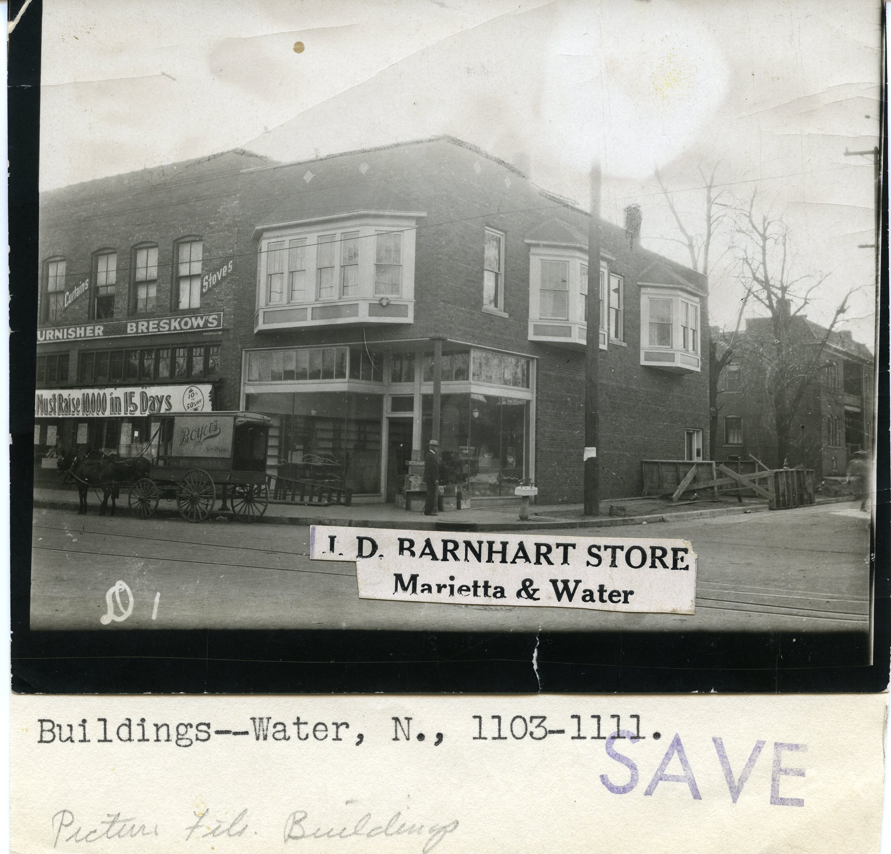 Photograph of the J. D. Barnhart Store located at 1103-1111 N. Water St., Decatur, IL.