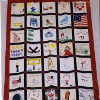 Various photographs of displays at the Decatur Public Library including the New Moon Quilt, a Black History Month Display, a holiday display, a Decatur Christian Schools display and Women in the Arts display.