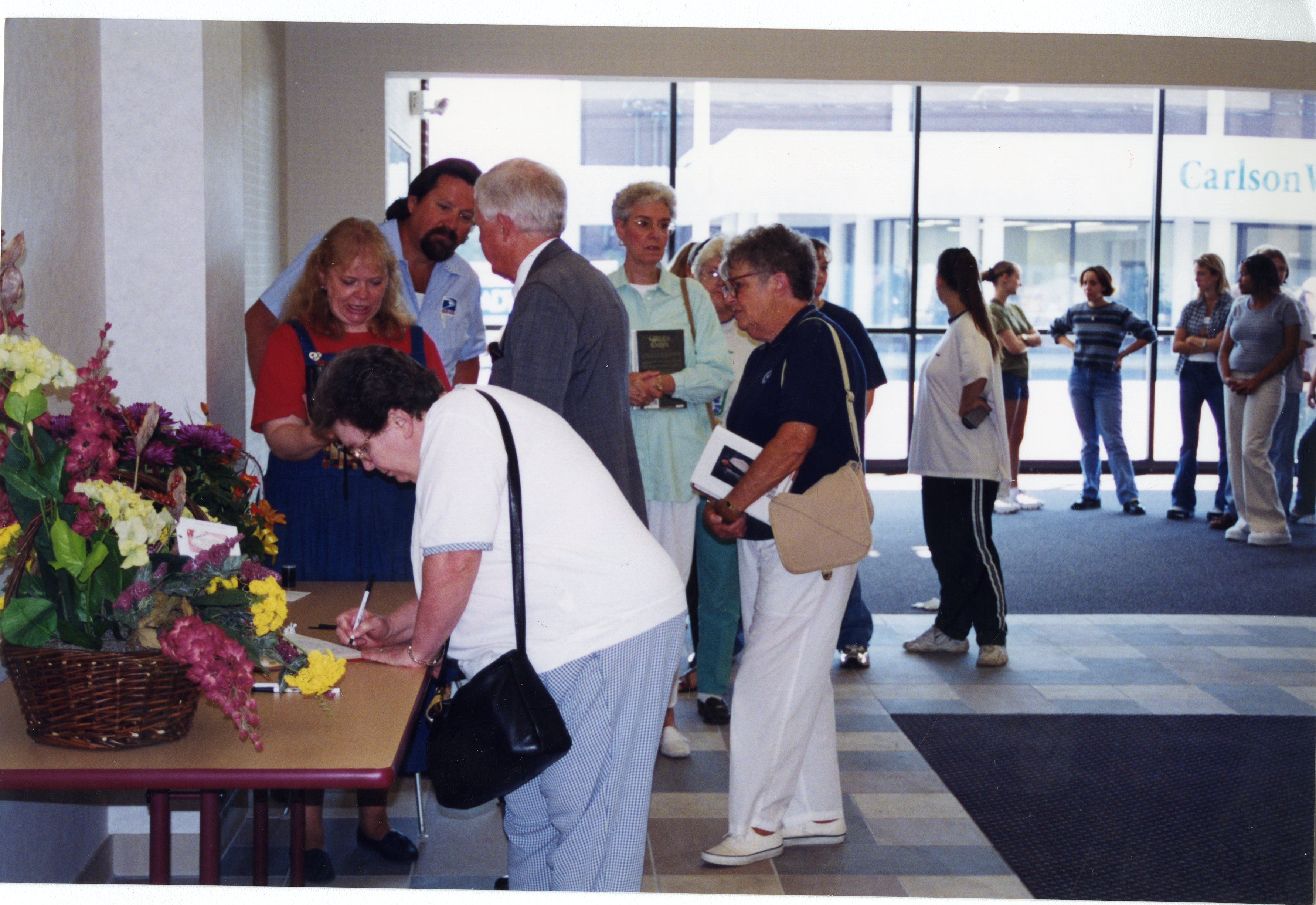 Photographs of the outdoor grand opening ceremonies of the Decatur Public Library at the new location at 130 N. Franklin St. in 1999.