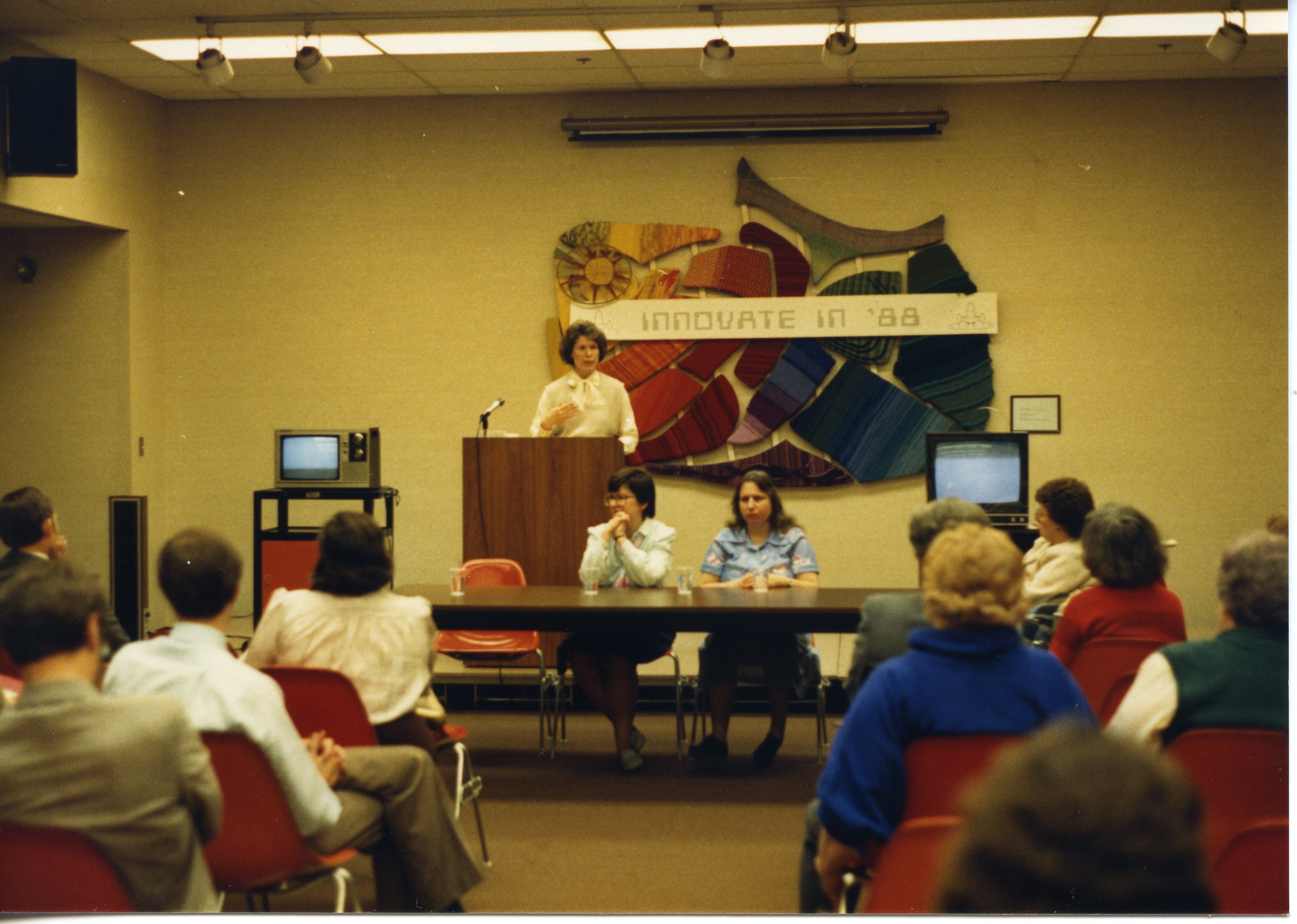 Decatur Public Library, “Photos of Staff Meetings at North Street Location taken in 1988.,” Decatur Public Library Local History Photo Collection, accessed December 13, 2025, http://64.107.106.133/items/show/3465.