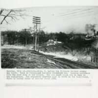 Photograph Decatur: "South Main Street before the Illinois Central subway was built. Road in foreground possibly Cleveland Ave. Looking northwest from the east side of the tracks. the old court house can be seen in the background. The Greenwood Cemetery also is shown in the background. Photo by George Baker of Decatur about 1925." Photograph of South Main Street: "Looking north from near the Illinois Central R. R. crossing. Photo by George Baker of Decatur. Photo ran Review 3/24/1912 after big sleet storm on March 20, 1912." Photograph of "South Main Gateway, taken 11/24/1933." Photograph of cars along South Main St. and Macon St. photo taken 10/1/1949." Photograph of South Main street subway taken 9/19/1936." Photograph of downtown Decatur at Main and Main. "By the beginning of the 20th Century downtown Decatur had far outgrown its merger beginnings from the 'old square' at Main and Main. the photo is from a position looking south on Water Street. The church at left is on the southeast corner of Water and North Streets."