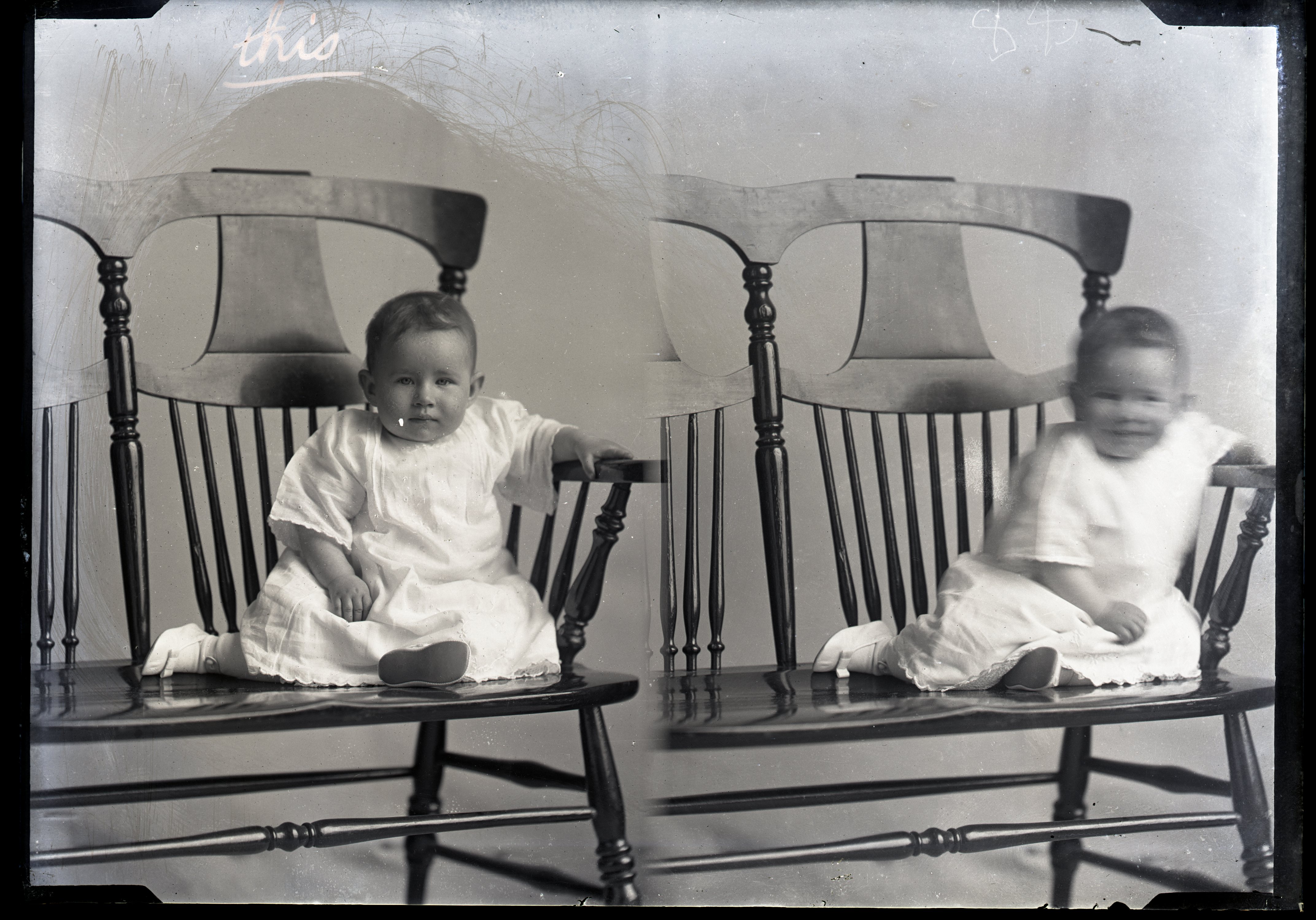 This is the glass negative of Mrs. Homer Garver's baby. The photo was taken by Charles Wasson of Wasson Studios in Decatur, IL in the early 1900s.