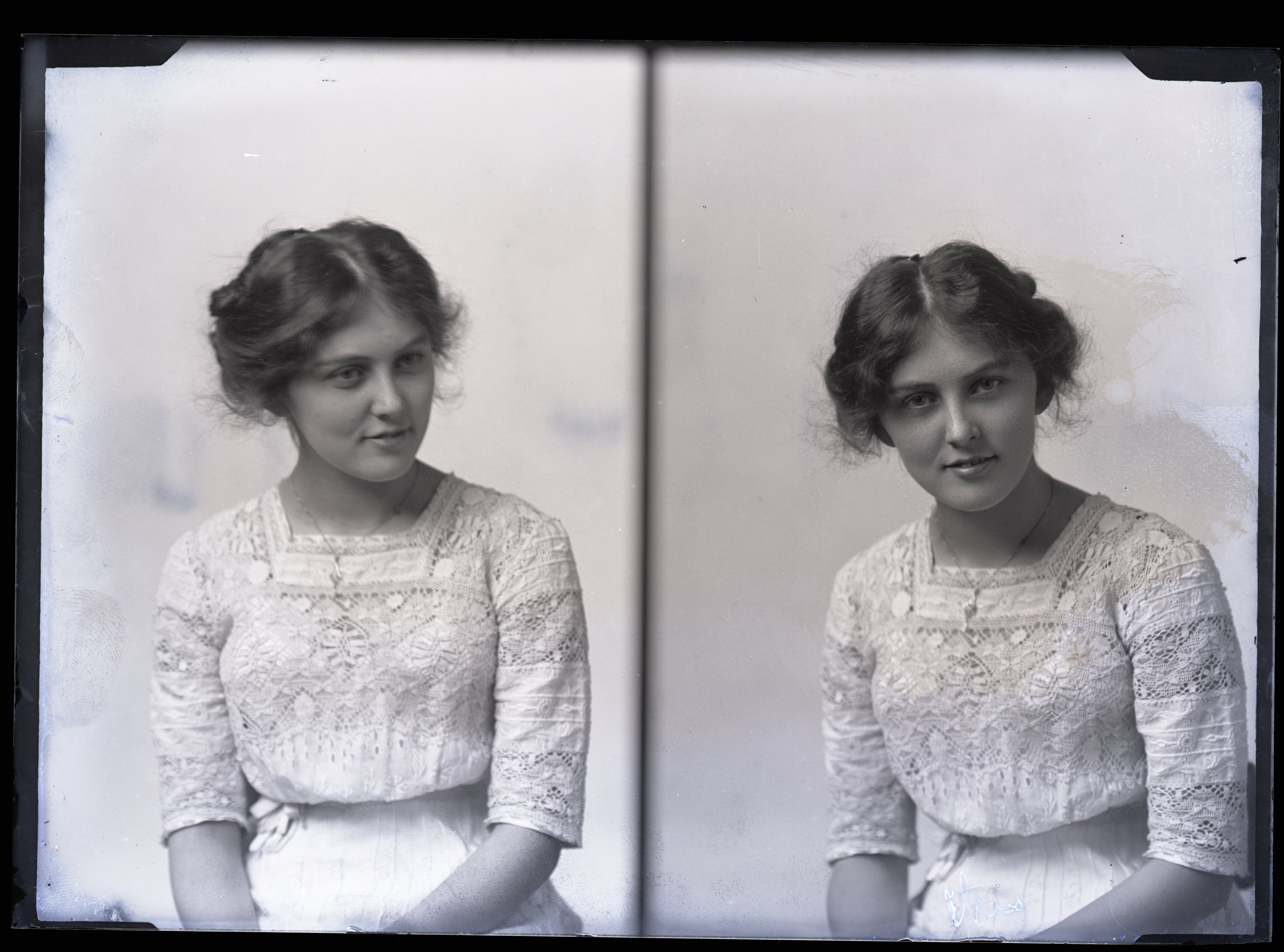 These are the glass negatives of Florence North, a Millikin University Freshman, and s, andmember of the Delta Delta Delta sorority. The photos were taken by Charles Wasson of Wasson Studios in Decatur, IL in the early 1900s, and used in the Millidek yearbook.