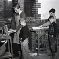 These are photos of the Adolph Mueller Community Center at Mueller Park/Southside Park. The photos include images of the building, children working on projects, dances, and a circus.
