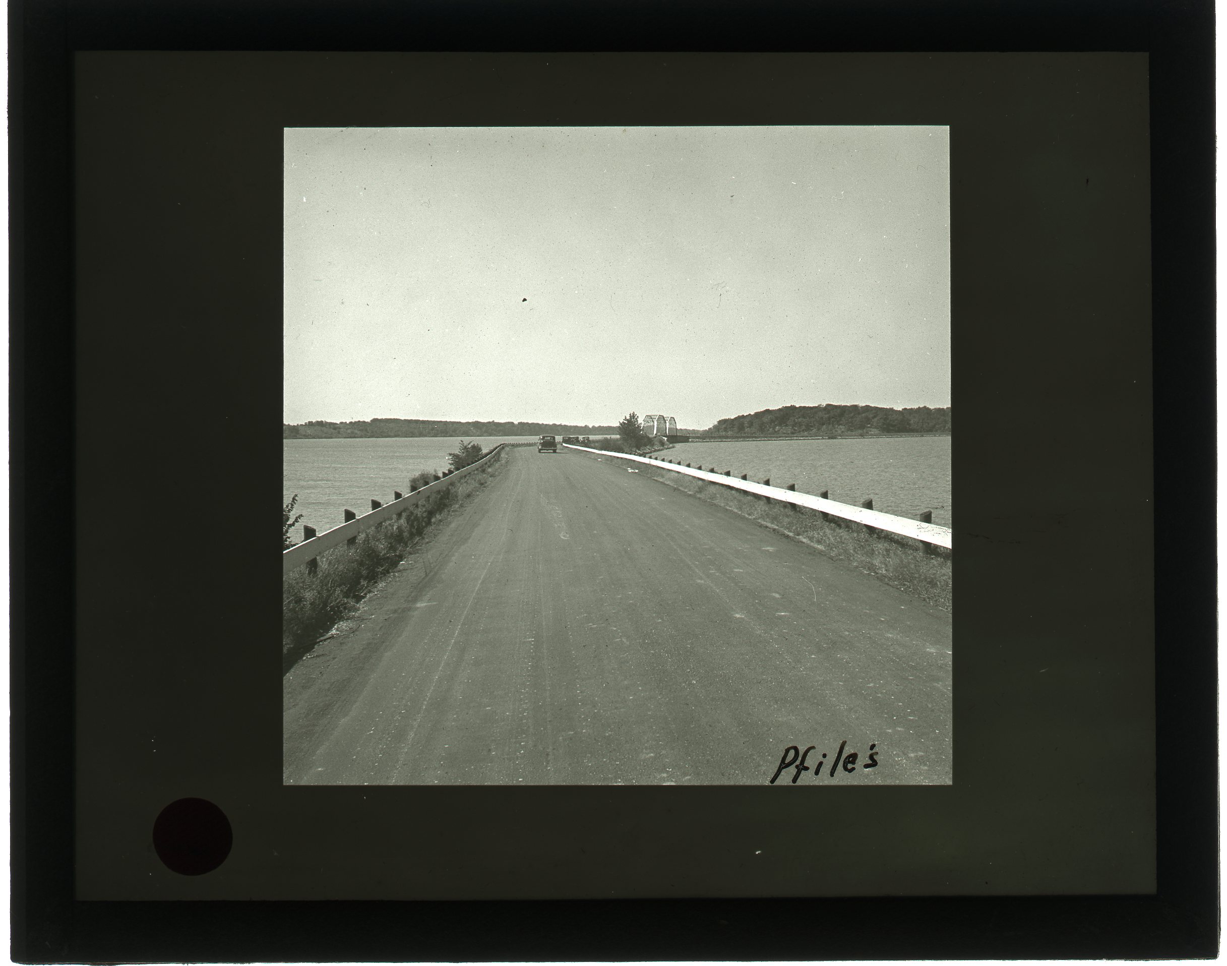 This is the glass negative of Lost Bridge Rd. looking west to Southmoreland Place. The photo was taken by Pfile's Camera Shop for Decatur Herald & Review in Decatur, IL around 1930s.