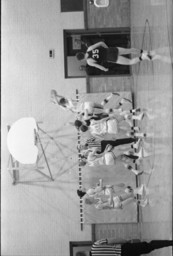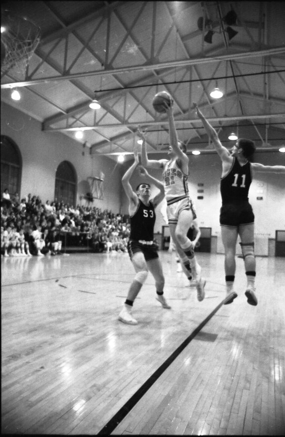 Photographs of the basketball game between Monticello and Gibson City, on 2/15/1966.