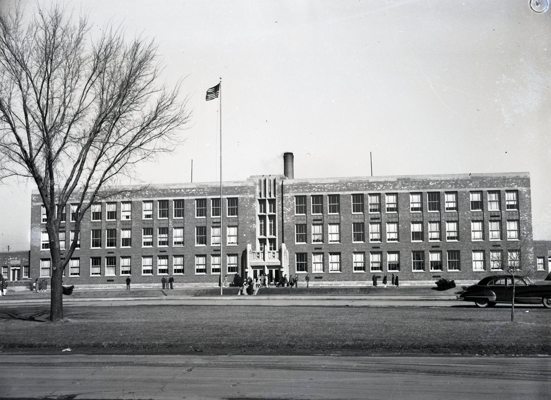 Photographs of Taylorville High School taken in 1949 and 1969.
