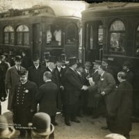 VS35: "President William Howard Taft, standing, and A. R. Taylor, president of Millikin University, climb down from the auto which took them to Millikin University following Taft's 14-minute address on "Reciprocity" at the Transfer House. At the university he spoke to students, faculty and guests. Taft visited here as President on Feb. 11,, 1911. He had made other visits before he became President and returned to Decatur later as a Supreme Court Justice." VS44: "At the Wabash R. R. Station U. S. President Taft and Millikin University President Taylor got into the back seat of the Chauncey Powers auto to be driven through the streets of Decatur before stopping at the Transfer House for Presidents Taft's speech. Included in the parade were the Goodman Band and several carloads of city dignitaries." VS45: "Taft, Pres. William Howard--Decatur Visit--1911. Seated in car with Taft is Charles S. Deneen, former governor of Illinois and United States Senator. Photo taken February 11,, 1911."