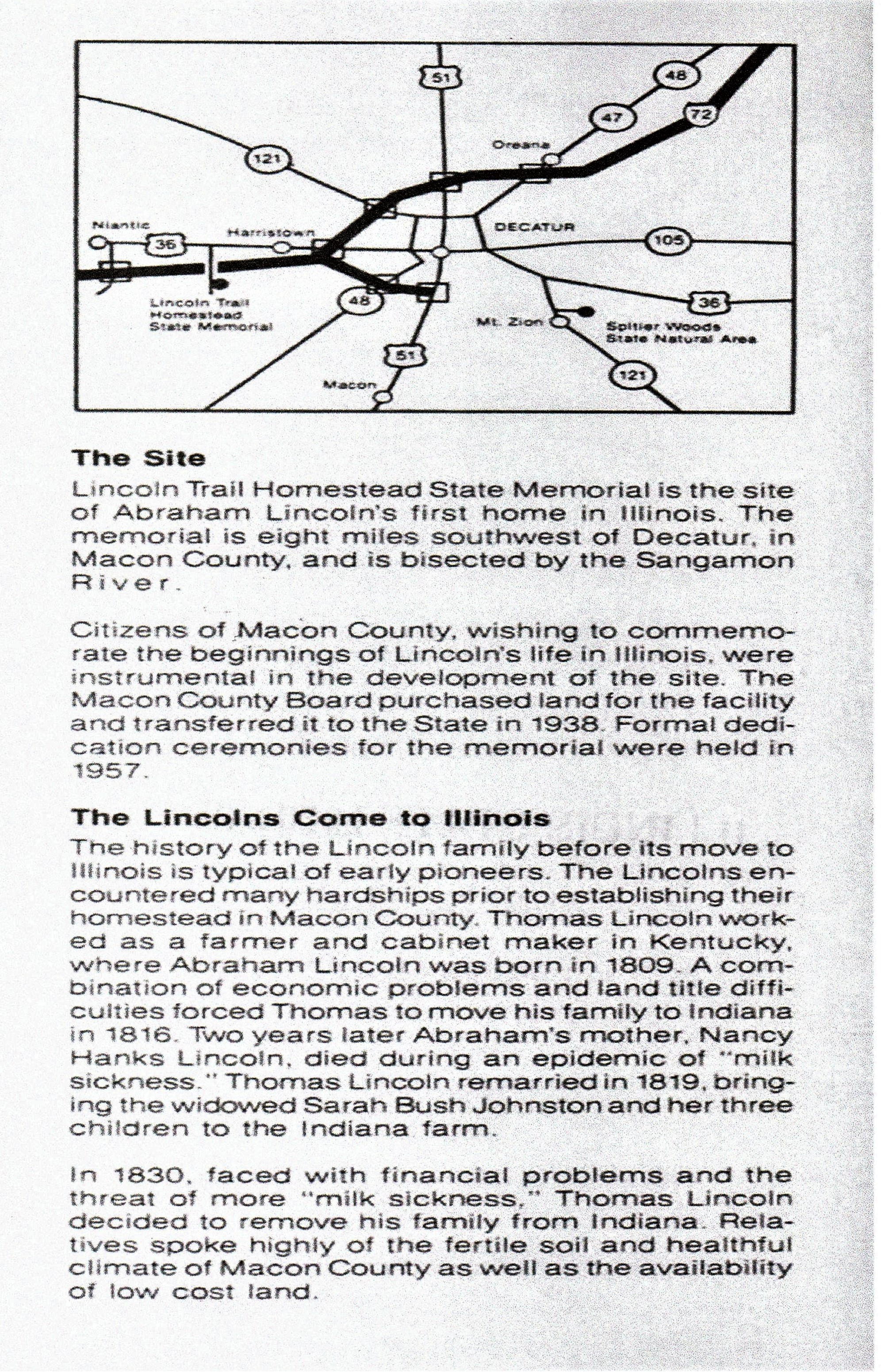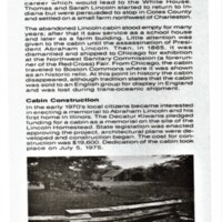 The dedication of Lincoln Trail Homestead State Park and Memorial and creation of a replica cabin and cabin removal.