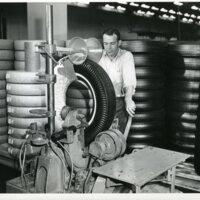 Photographs of employees and tire manufacturing equipment Firestone Plant, Decatur, IL.
