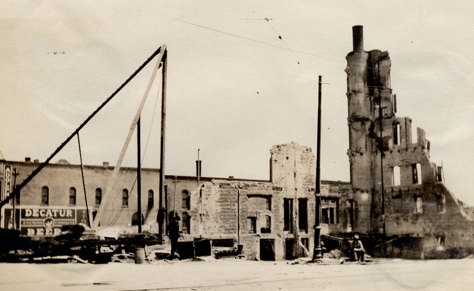 Herald and Review, Decatur, IL., “Photos of the Fire at the Powers Grand Opera in 1914.,” Decatur Public Library Local History Photo Collection, accessed December 13, 2025, http://64.107.106.133/items/show/8471.