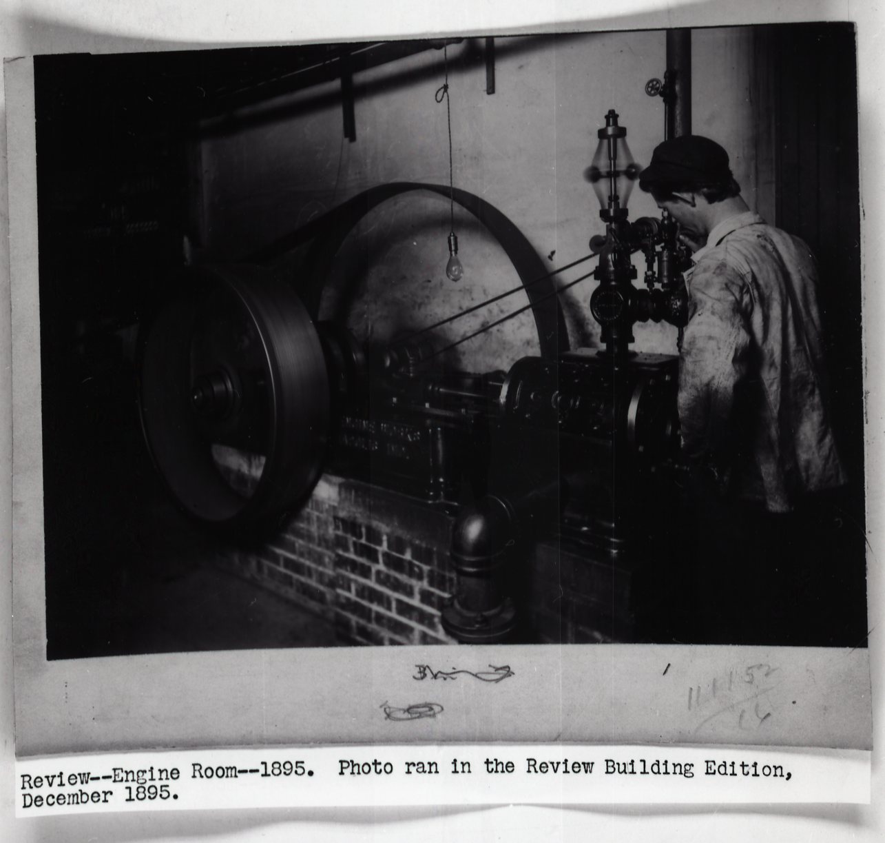Photograph of Business Manager Office 1895. Photograph of Editor's Office 1895. Photograph Employees 1890. Photograph of General Manager's Office 1913. Photograph of Engine Room 1895 with employee. Photograph of Engraving Room 1913, with employee.
