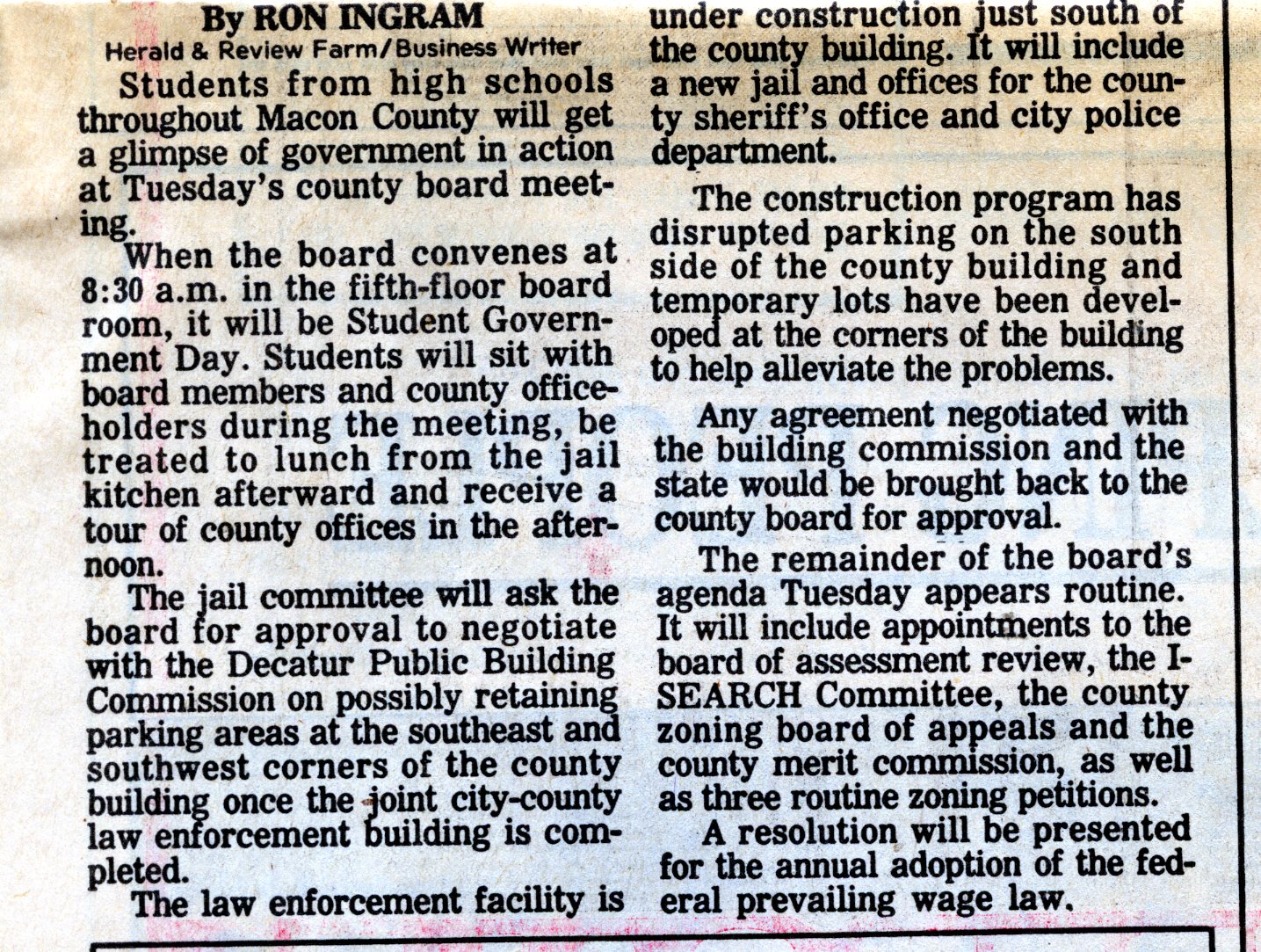 League of Women Voters - News Articles - Macon County Board - Student Government Day
