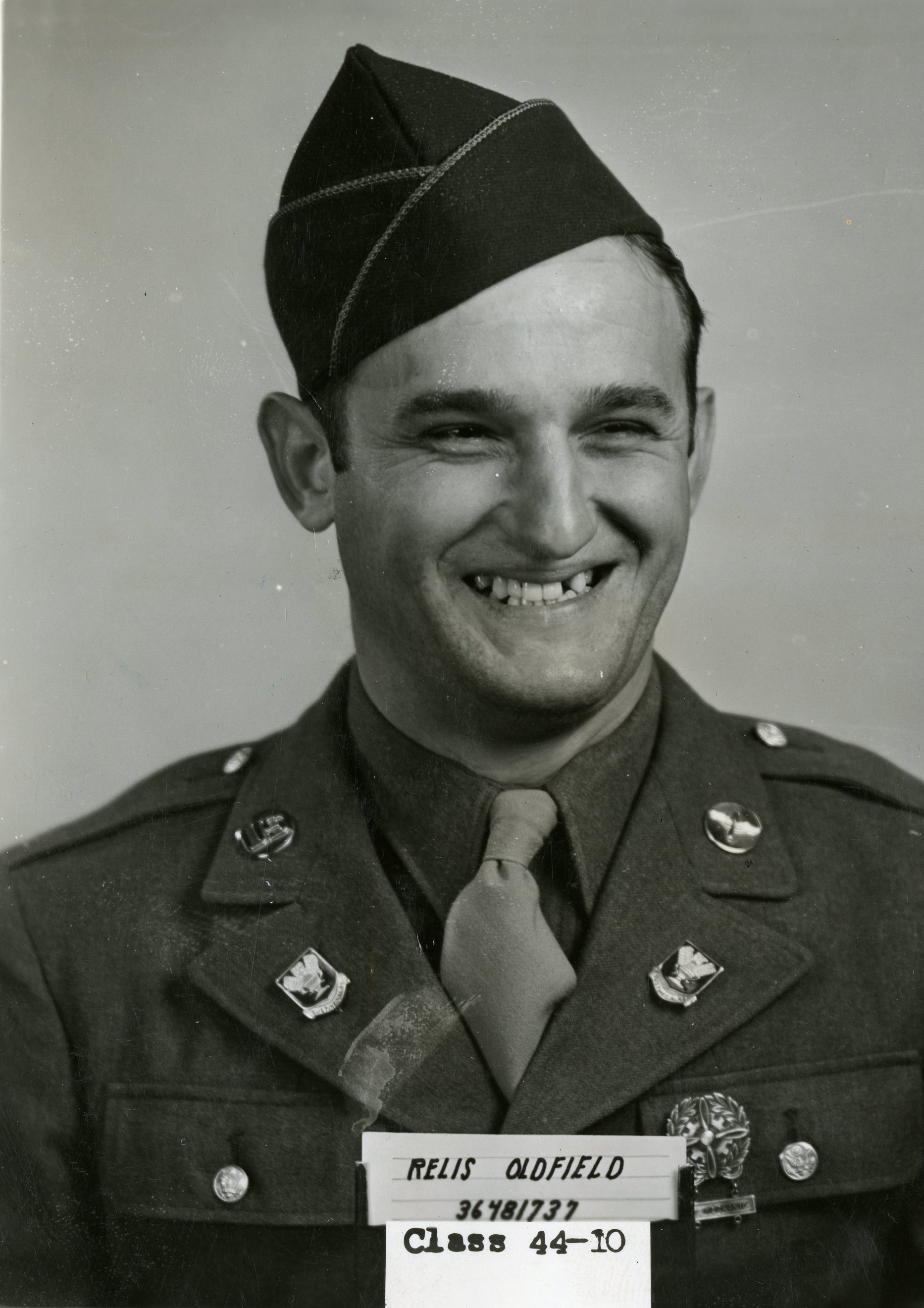 Herald and Review, “Photo of Cpl. Relis Oldfield in uniform with name tag and serial number,” Decatur Public Library Local History Photo Collection, accessed December 13, 2025, http://64.107.106.133/items/show/926.