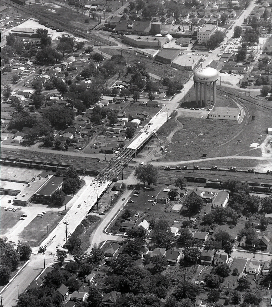 Herald and Review, Decatur, IL., “Photos of the Garfield Ave. Viaduct Construction Late 1950's.,” Decatur Public Library Local History Photo Collection, accessed November 11, 2025, http://64.107.106.133/items/show/9263.