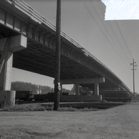 Photograph of Garfield Viaduct construction. Aerial views of the Garfield Viaduct construction. Photograph of a cars using the new Garfield Viaduct. Photograph of the underside of the viaduct. Photograph of children at the ribbon cutting of the Garfield Viaduct.