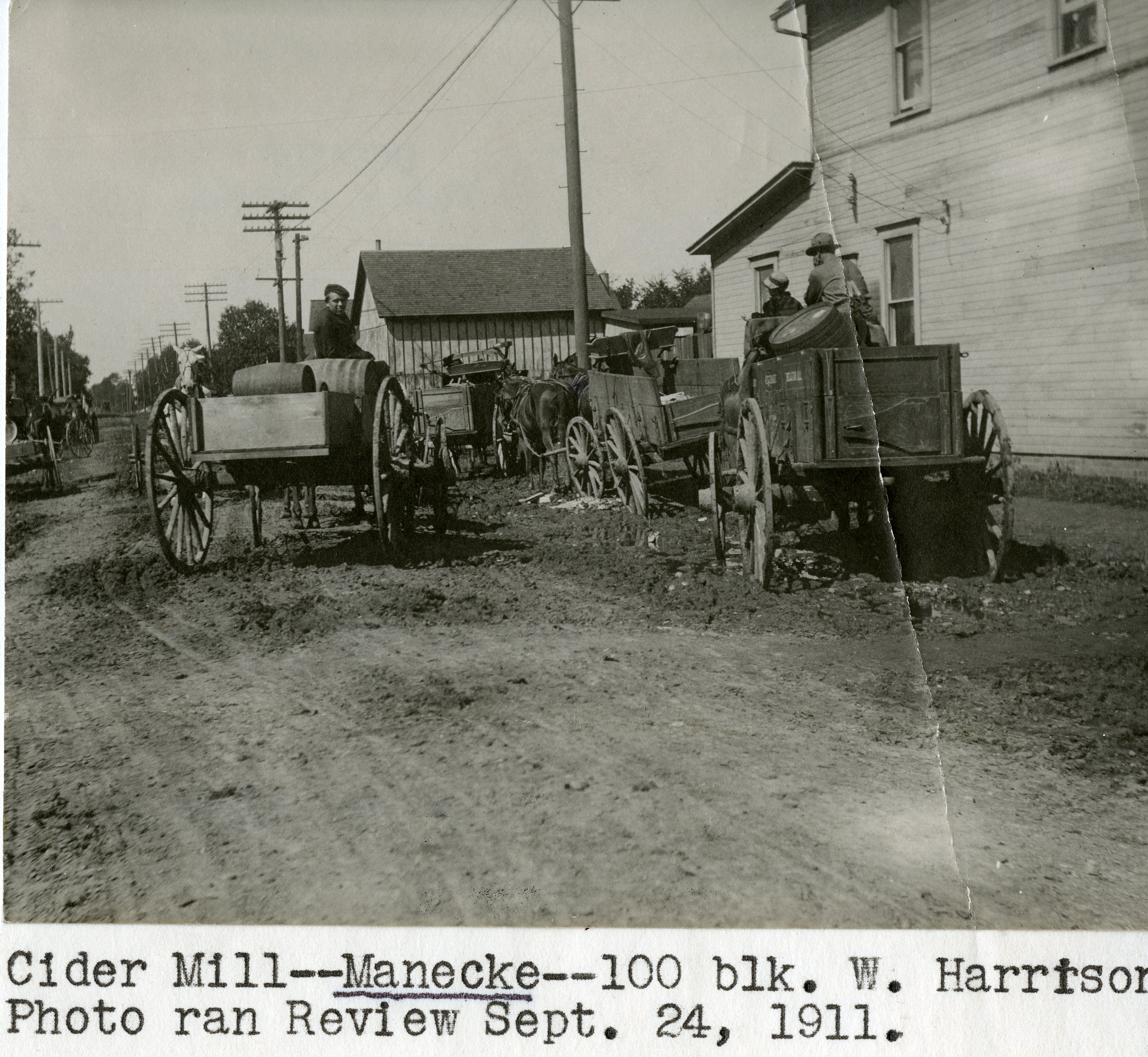 Photograph "Cider Mill--Manecke--100 Block W. Harrison. Photo ran Review Sept. 24, 1911."