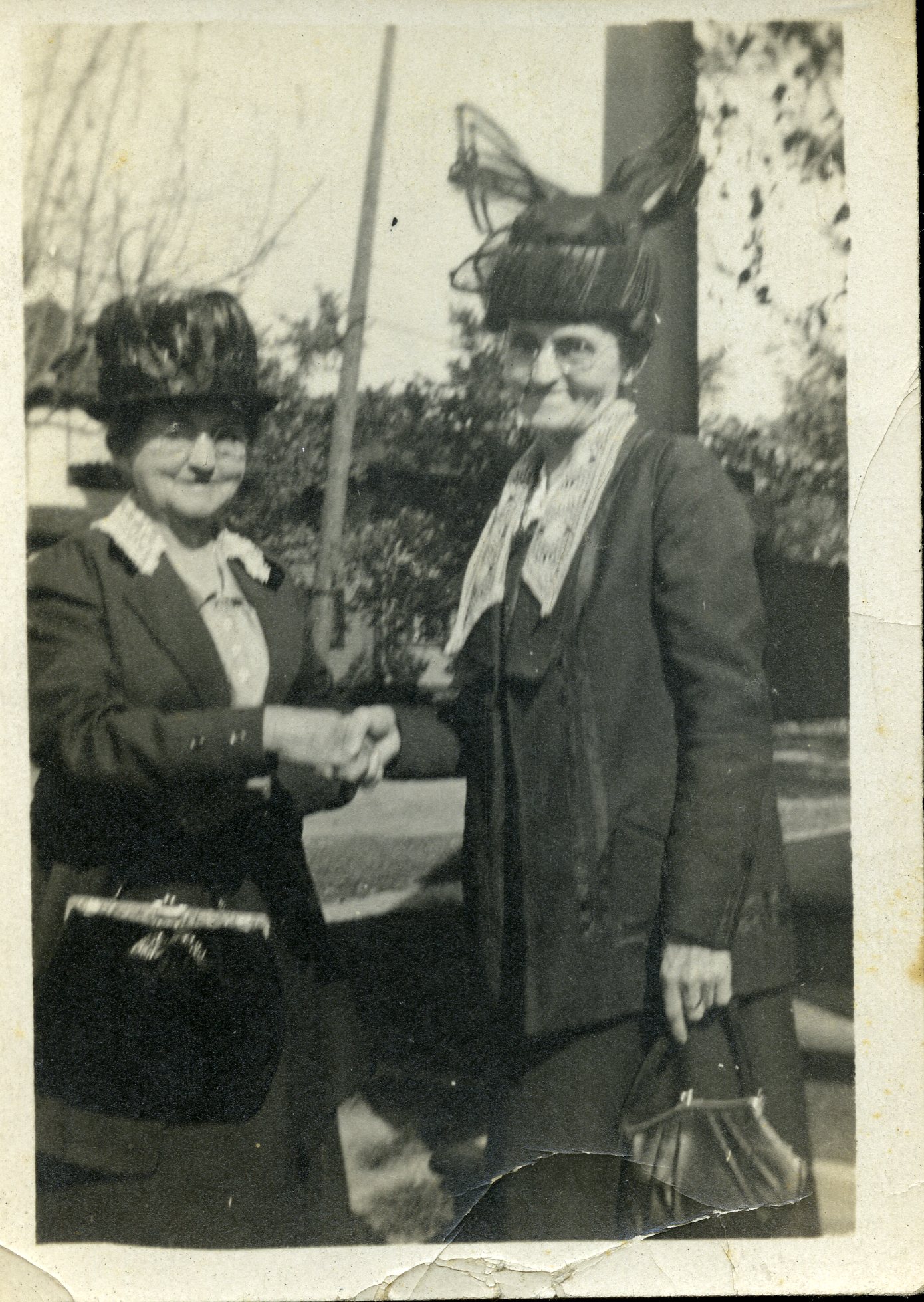 This is a photograph of two unknown older women shaking hands