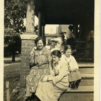 Two Women, two Children, on Porch, Virgin Family Collection, Photograph
