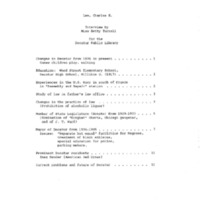 This is the transcription of Charles E. Lee's oral history. He was interviewed by Betty Turnell in December 1980. The interview includes his early life, his education, time in the U.S. Navy, law career, time in the IL state Senate, time as Mayor of Decatur, race relations, the Police Department, and Commission on Aging.