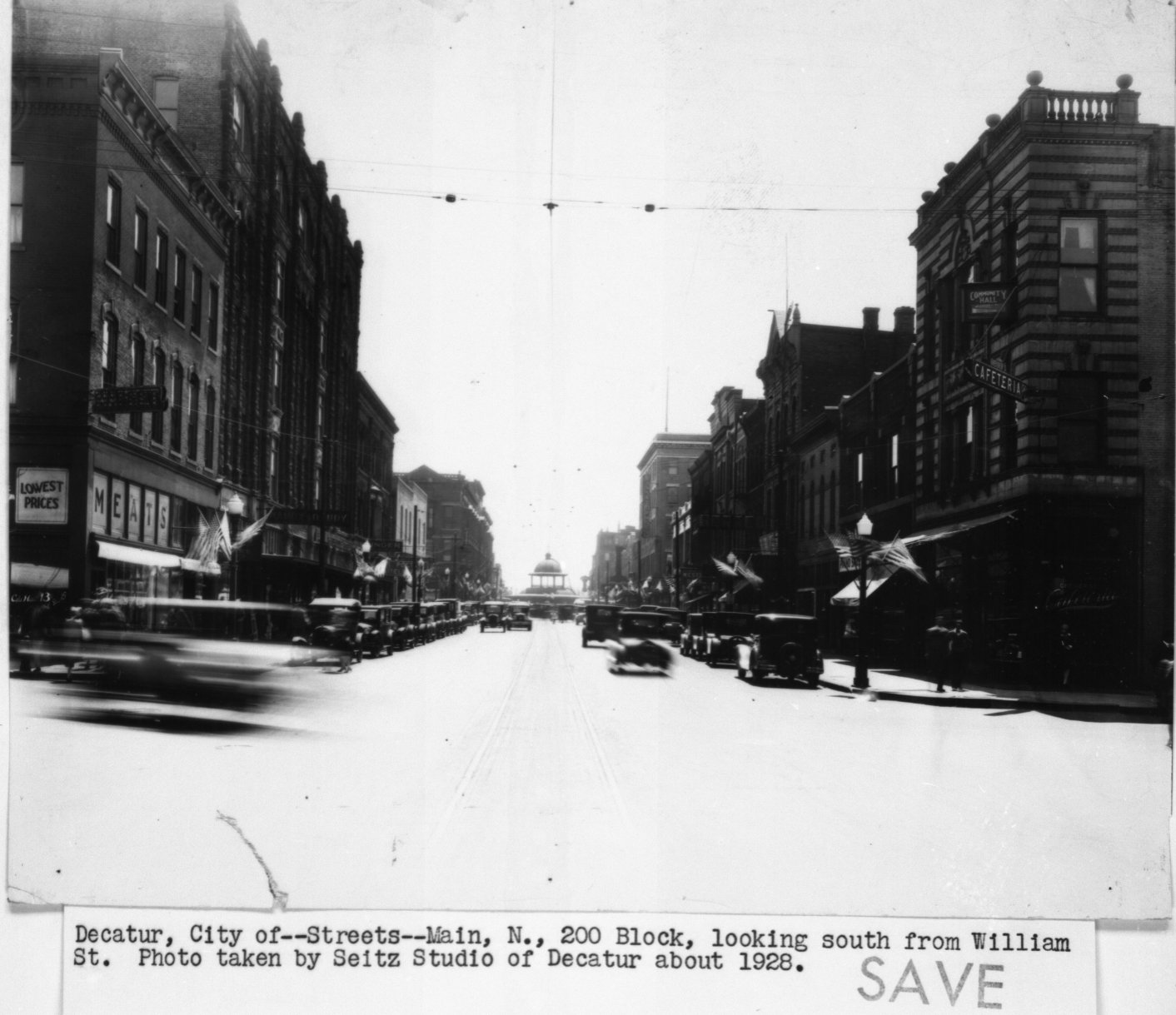 Seitz Studio, Decatur, IL., “Miscellaneous Photos of North Main Street, Decatur, IL. Early 1900's.,” Decatur Public Library Local History Photo Collection, accessed November 18, 2025, http://64.107.106.133/items/show/9336.