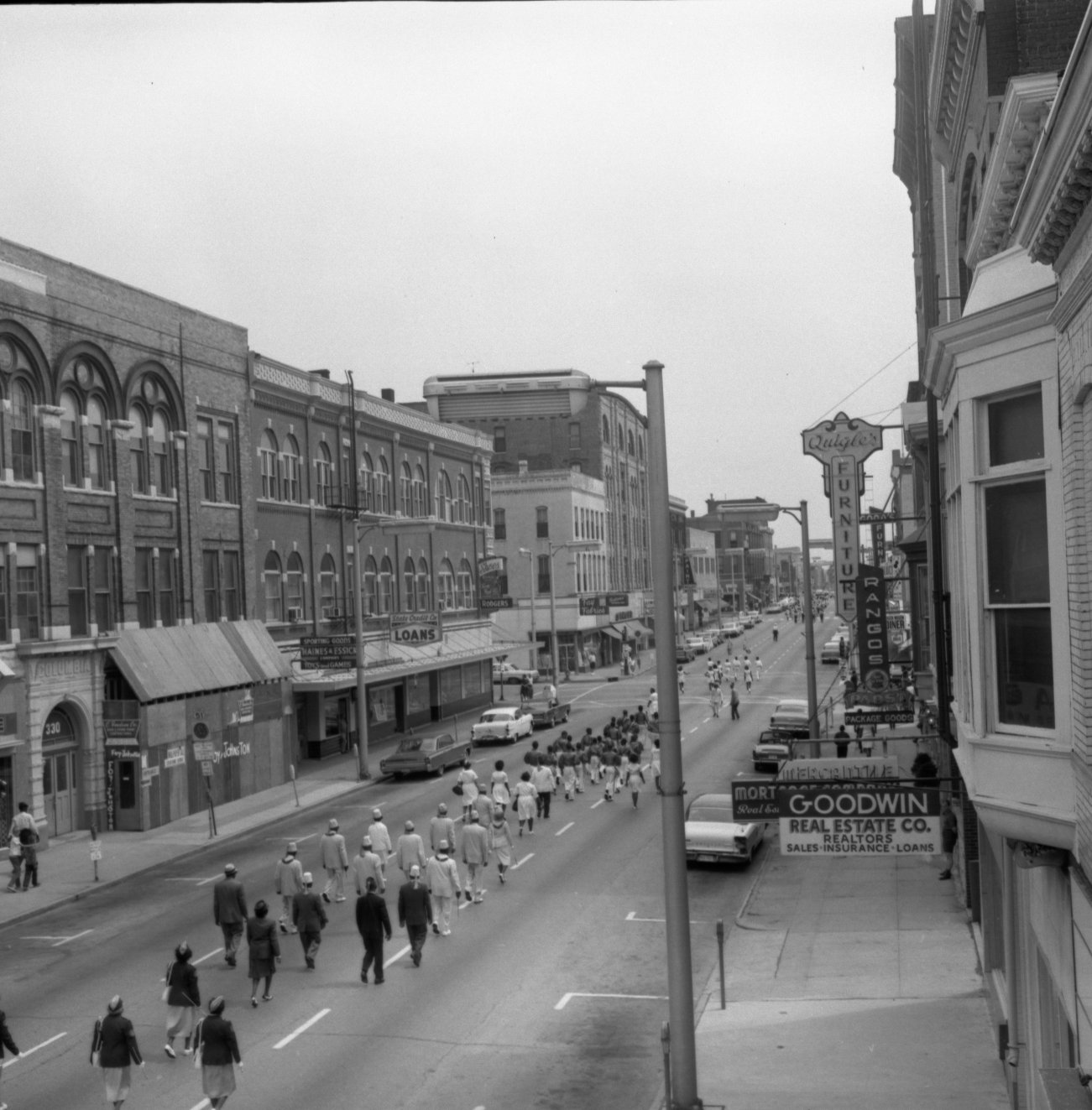 Herald and Review, Decatur, IL., “Photos of N. Main St. 1950's and 1960's,” Decatur Public Library Local History Photo Collection, accessed November 18, 2025, http://64.107.106.133/items/show/9337.