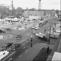 Photograph of N. Main St. buildings, transfer house in background. Photograph of parade on 6/20/1965. Photograph of busy intersection N. Main, c. 1950.