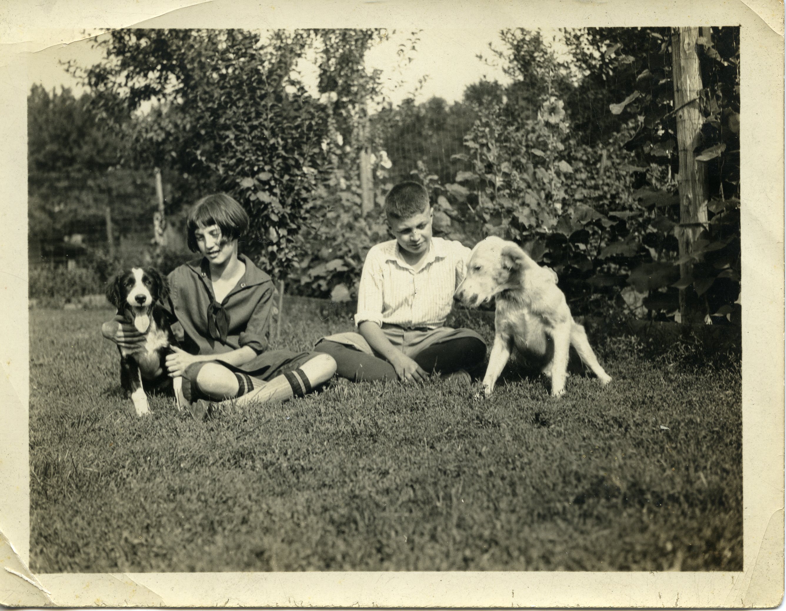 Donald, unknown girl, two dogs, Virgin Family Collection, Photograph