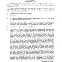 This is the recording of Orv Graham's 1st oral history. He was interviewed by Betty Turnell on September 17, 1987. This interview covers the history of radio in Decatur.