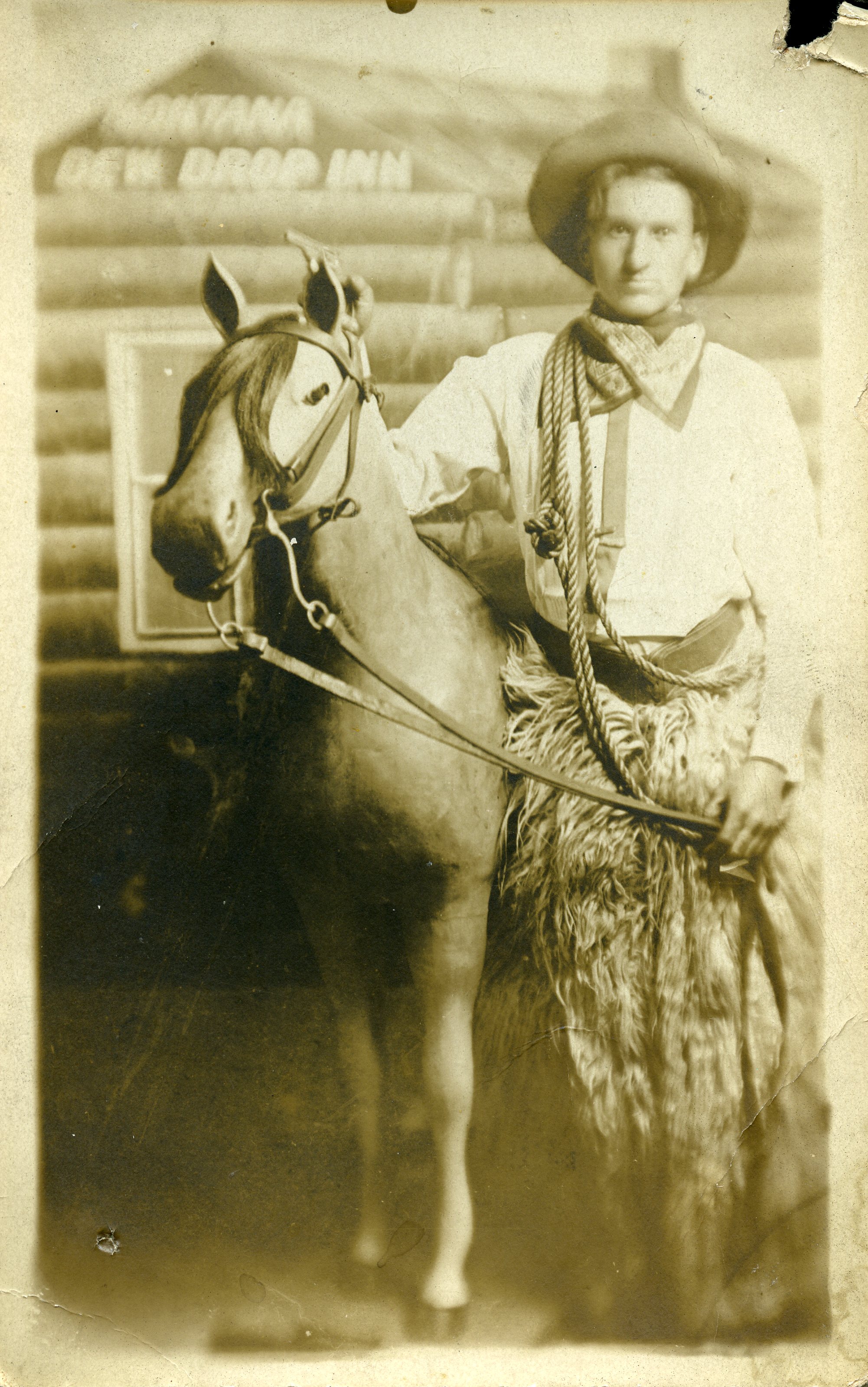 , “Man with fake horse at the Dew Drop Inn Montana,” Decatur Public Library Local History Photo Collection, accessed November 19, 2025, http://64.107.106.133/items/show/9363.