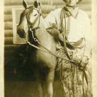 Man, fake horse, Dew Drop Inn, Montana, Virgin Family, Collection, Photograph