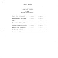 This is the transcription of Robert Emmons' oral history. He was interviewed by Betty Turnell in June 1982. The interview covers his time in World War I, the Great Depression, Chamber of Commerce, and Kiwanis Club.