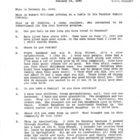 This is the transcription of Al Dobbins' oral history. He was interviewed by Robert Williams on 1/24/1990. The interview covers Al Dobbins' time with the Red Cross and Staley Co., and dealing with discrimination.