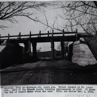 Photograph of W. Eldorado Ave. Subway. Photograph of E. Prairie Ave. Subway. Photograph of St. Louis Ave. Subway "Decatur, City of--Subways--St. Louis Ave. Wabash viaduct at St. Louis Ave., part of the Wabash double tracking improvements in 1912. It shows the use of cement where stone was used. Photo ran Review Dec. 1, 1912." Photograph of the Fairview Ave. Subway, Decatur, IL.