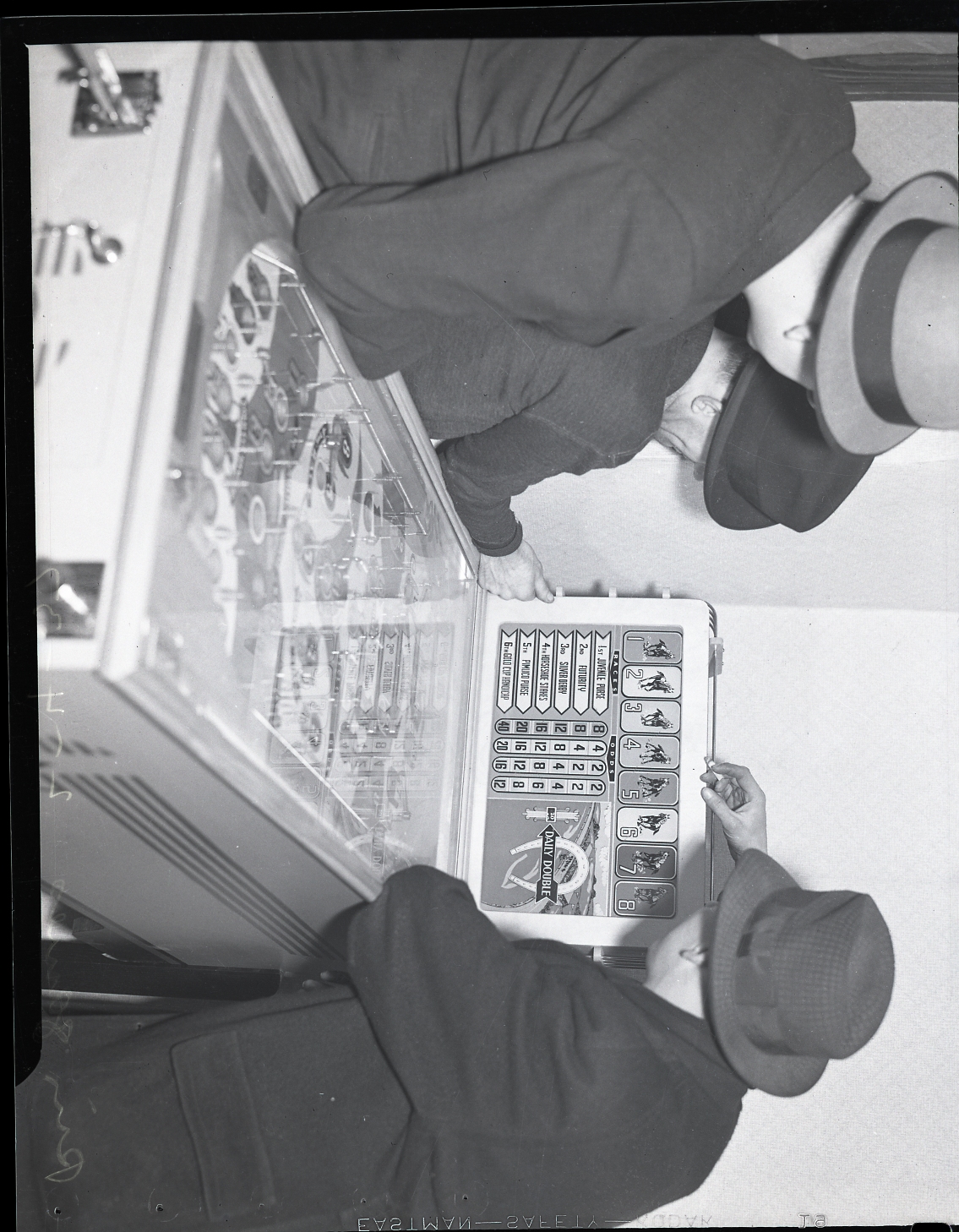 Herald and Review, Decatur, IL., “Photo of Pinball Machine Used in Gambling,” Decatur Public Library Local History Photo Collection, accessed January 13, 2026, http://64.107.106.133/items/show/9562.