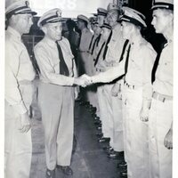 George Reynolds shakes hand with Admiral Ginder