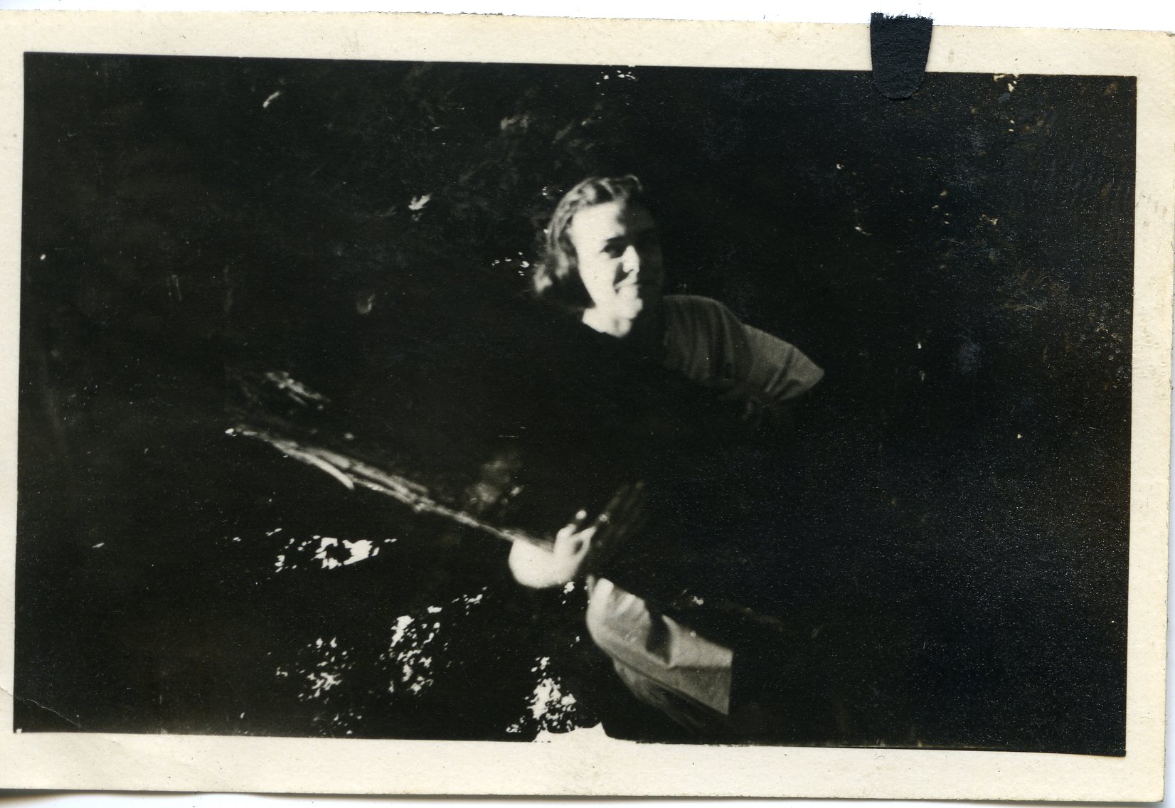 Photograph of Mabel Grubbs in a tree.